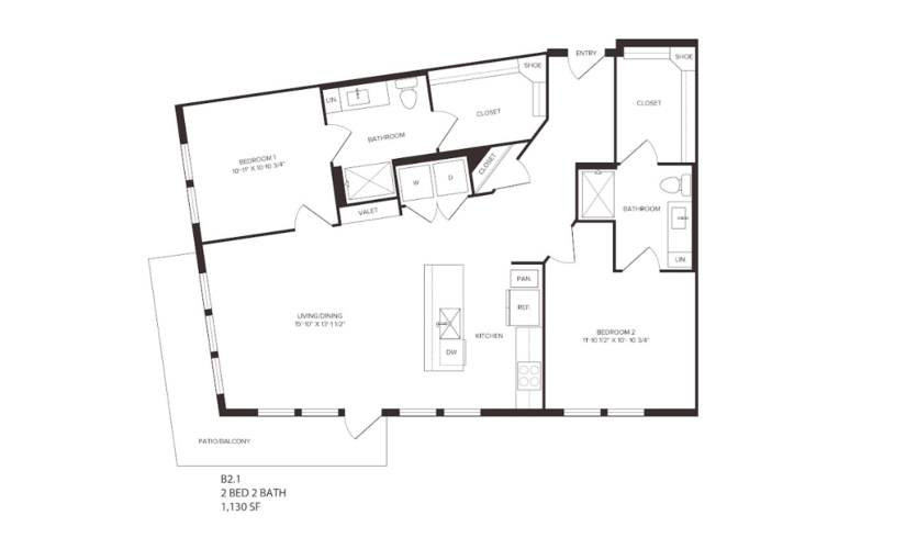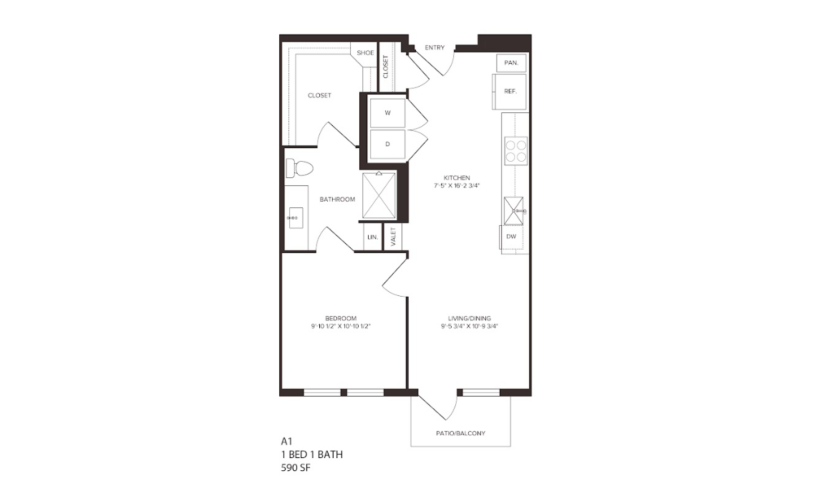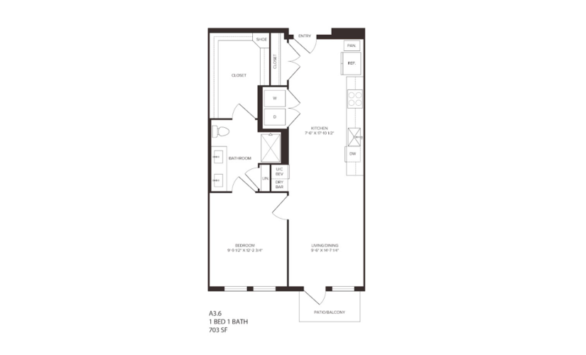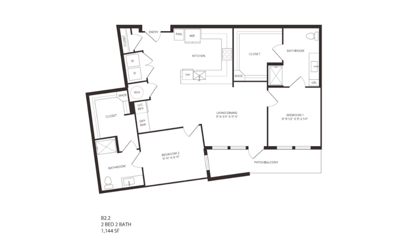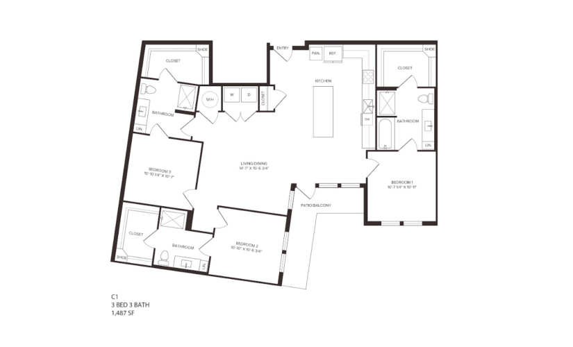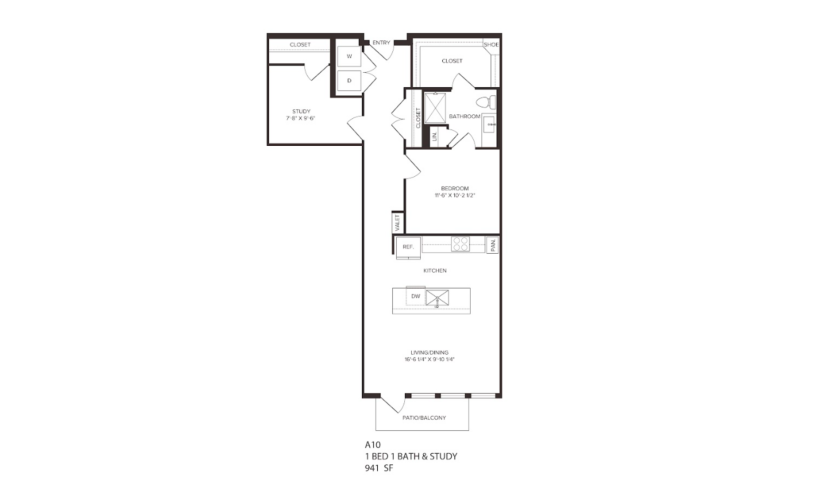 1 Bed 1 Bath & Study | 941 sq. ft.